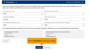 The Career Calculator will help you investigate careers using local labour market information such as wages, education programs, costs, and current hiring demand so you have more information to make a decision about your career. Users are encouraged to confirm total education and related study period costs directly with the institution and investigate the relevancy and legitimacy of job postings to their target occupation. This tool relies on National Occupation Classification codes to group similar occupations together for research and analysis purposes.